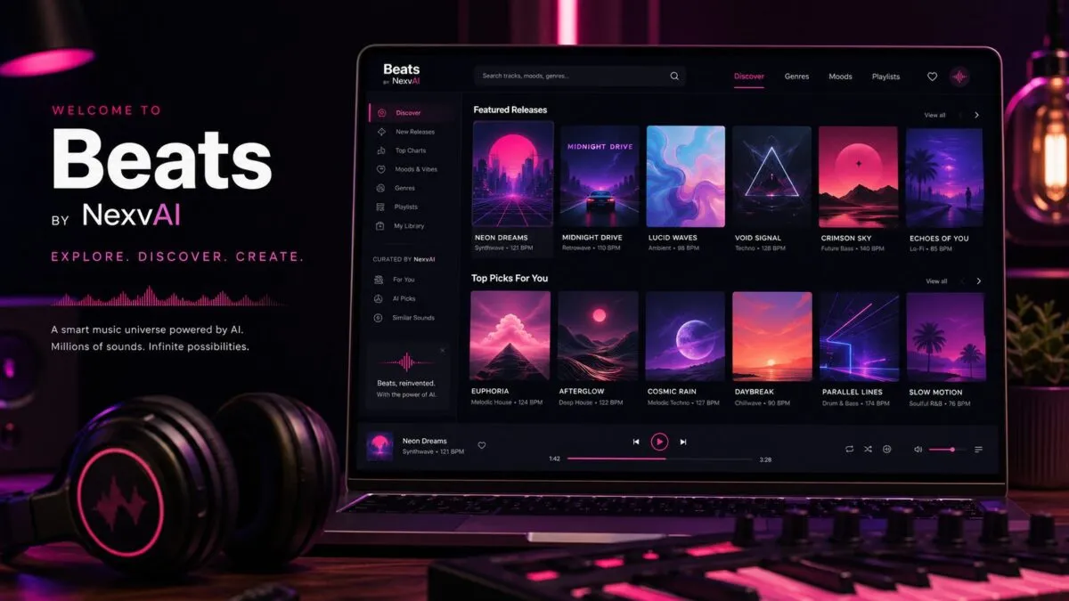 Beats nace como un espacio para descubrir música original, descargar pistas con licencia clara y conectar canciones con creadores, marcas…